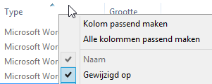 - Klik op de rechtermuisknop op de balk met kolomnamen