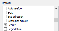 - Om het bedrijf te tonen moet je eerst voor >> Meer kiezen en daarna is ook bedrijf zichtbaar om te worden geselecteerd