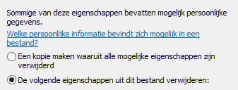 - Dat kan door onder in op de optie >> Eigenschappen en persoonlijke gegevens verwijderen te klikken