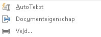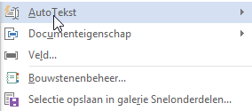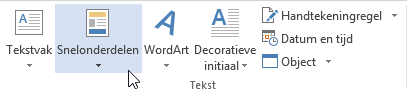 - Kies voor Tab Invoegen >> Groep Tekst >> Optie Snelonderdelen