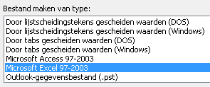- Kies voor >> Microsoft Excel 97-2003