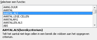 - AANTAL.ALS -> om aan te geven welke functie wordt gebruikt