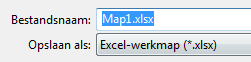 - In het vak >> Opslaan als wordt standaard het Excel bestandstype getoond