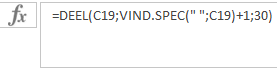 - =DEEL(C19;VIND.SPEC(” “;C19)+1;30)