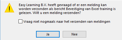 Wanneer je een vinkje zet bij de vraag voor een leesbevestiging, kun je een vinkje zetten bij >> Vraag niet nogmaals naar het verzenden van meldingen.