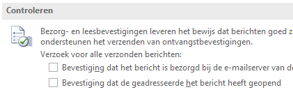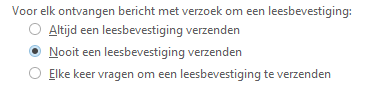 Door deze optie te selecteren, wordt er nooit een bevestiging verzonden. Welke instelling de verzender ook meegeeft, er zal vanuit Outlook geen reactie plaatsvinden.