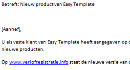 - Maak een bestand aan met daarin de velden die in de mailing moeten worden gebruikt