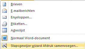 - Kies voor >> Stapsgewijze wizard Afdruk samenvoegen