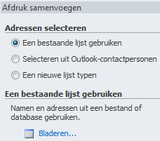 - Omdat de adressen al in een Excel sheet zijn ingevoerd, kiezen we voor >> Een bestaande lijst gebruiken
