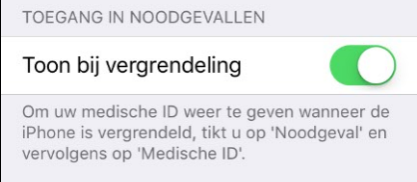Bij verschillende telefoons zal een vergelijkbare oplossing zijn, maar dit onderdeel beschrijft die van de iPhone. Door in deze app de contacten toe te voegen, kunnen deze contacten worden gebeld via noodoproep en hoeft dus niet de telefoon ontgrendeld te worden.