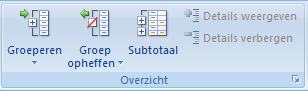In plaats van een formule of functie beschikt Excel ook over de mogelijkheid om een lijst te tonen in verschillende weergaven. In het onderdeel >> Overzicht zit een optie subtotaal.