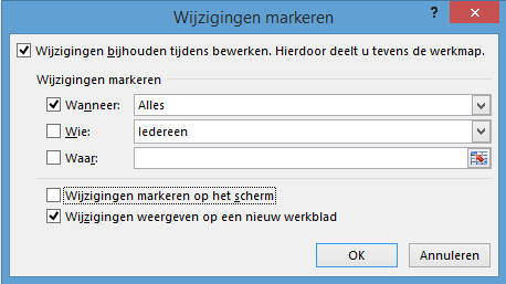 - Je kunt kiezen of de wijzigingen in de cellen moeten worden weergegeven of dat dit op een apart werkblad moet gebeuren