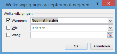 Wanneer eenmaal de wijzigingen zijn gelogd zijn deze een voor een of alles tegelijk te accepteren of te negeren.