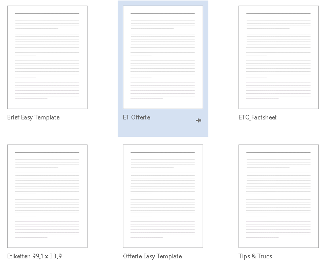 Wanneer Word is geopend kun je in één keer de opgeslagen sjablonen zien.